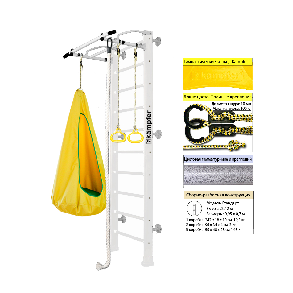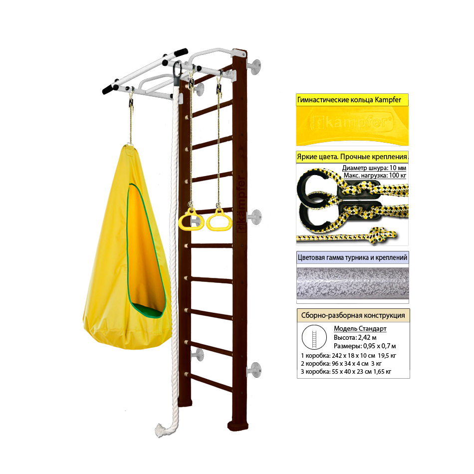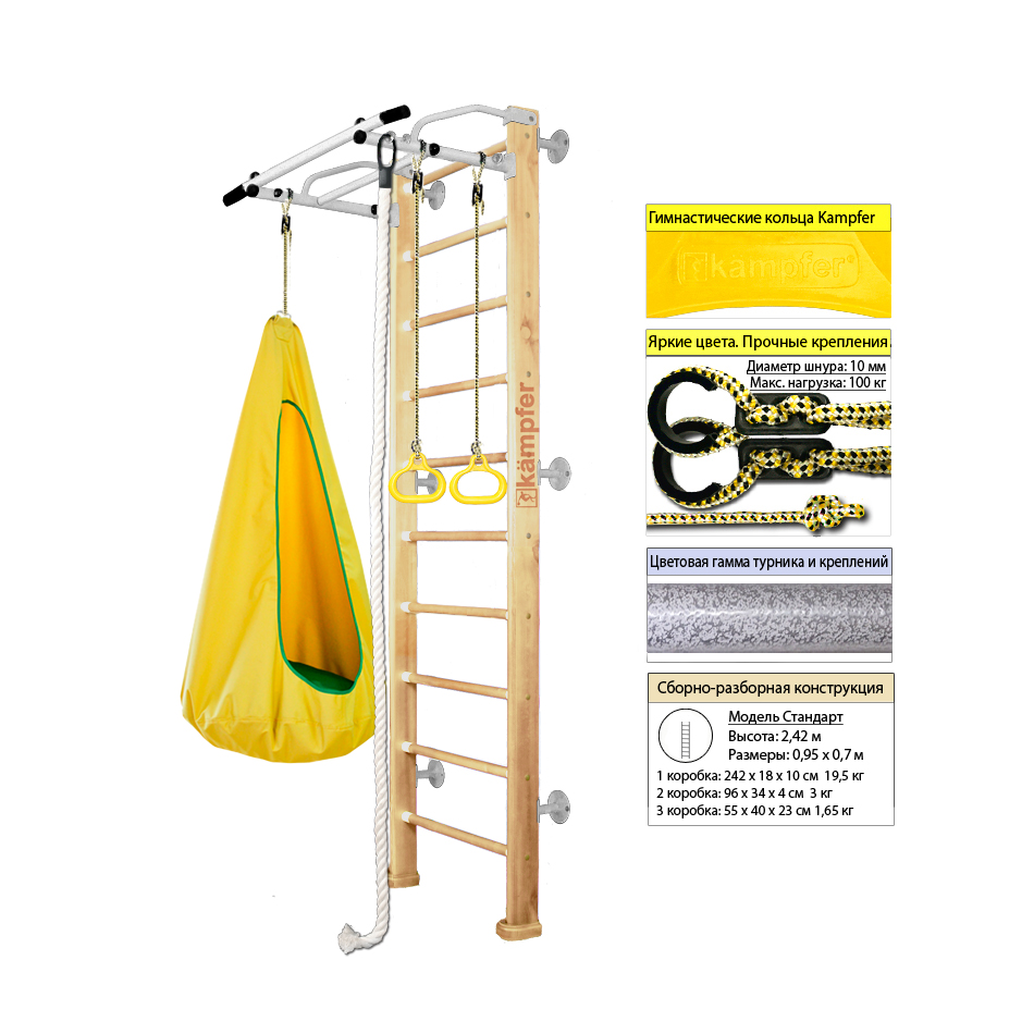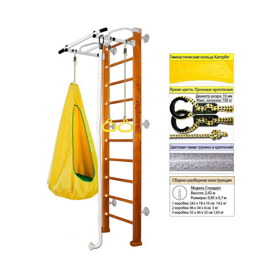 1 место (шведская стенка): 242 х 18 х 10 см 19,5 кг