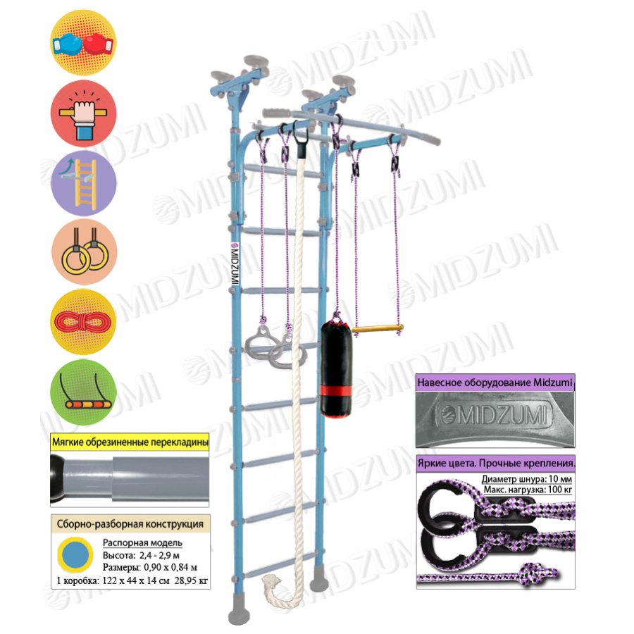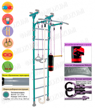 Детский спортивный комплекс Midzumi Hoshi Boxing имеет прочную металлическую конструкцию позволяет выдерживать до 100 кг.