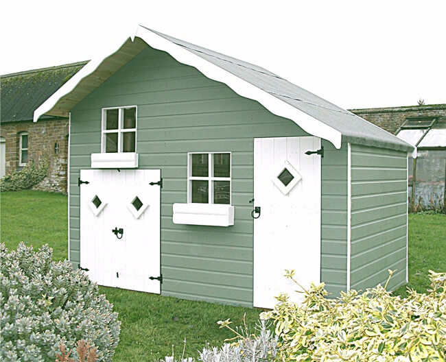 Чудесный домик для маленького автолюбителя! Теперь, малыш сможет ставить свой автомобиль в собственный гараж. Окна домика оснащены ящиками для цветов. Домик изготовлен из древесины, защищенной от насекомых и стойкой к гниению, без обработки химикатами.
