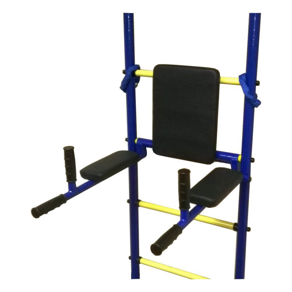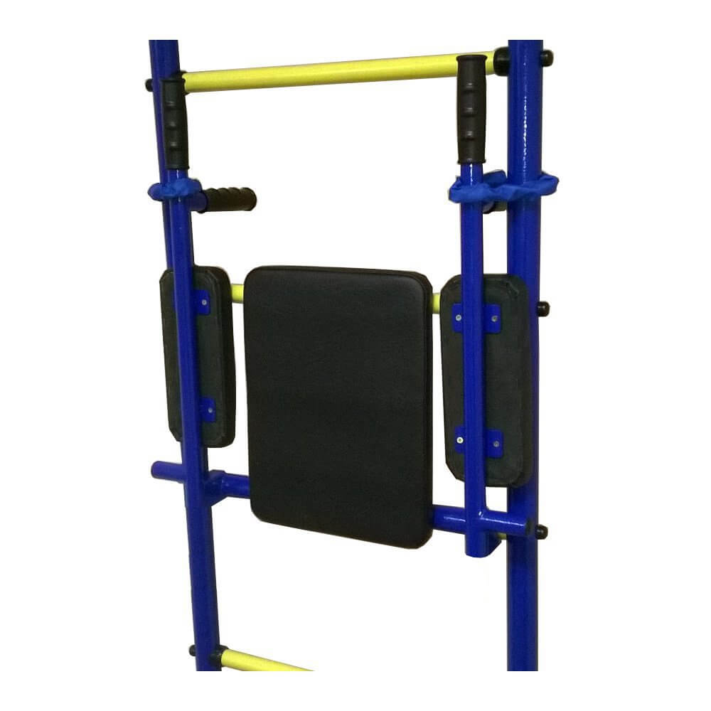 Описание:  Отличным дополнением к детскому спортивному комплексу будет откидной навес. Данный элемент комбинирует в себе брусья и навес для пресса и отлично подойдет для выполнения силовых упражнений. Ширина между брусьями рассчитана так, чтобы на снаряде было удобно заниматься детям любого возраста.