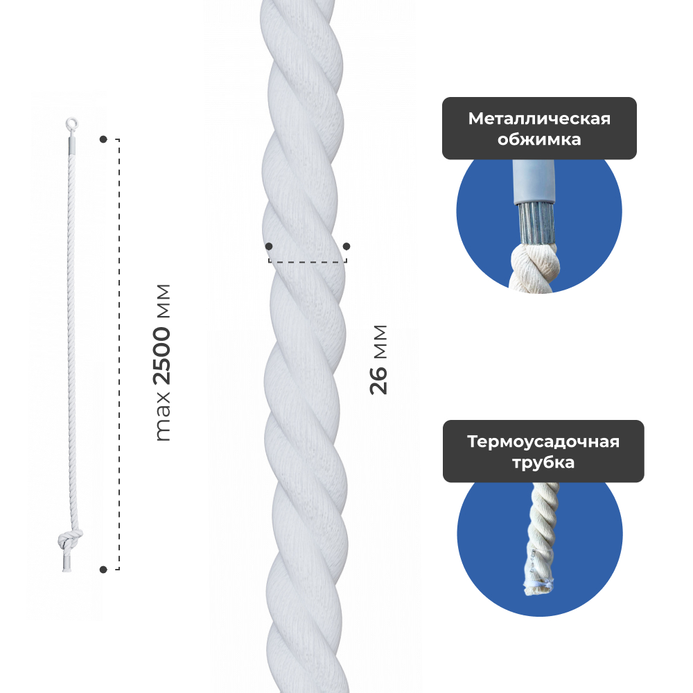 Канат — традиционно любимое навесное оборудование маленьких спортсменов. С его помощью отлично тренируется координация, сила и выносливость. ROMANA предлагает канат белого цвета в качестве дополнительного элемента для ДСК. Канат выполнен из плотных волокон, его можно закрепить на верхнюю перекладину.