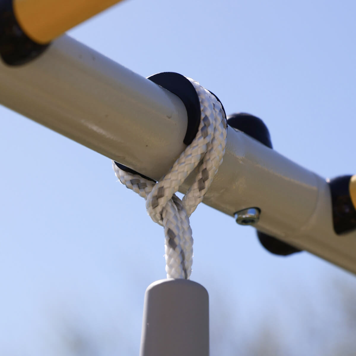 Канат — традиционно любимое навесное оборудование маленьких спортсменов. С его помощью отлично тренируется координация, сила и выносливость. ROMANA предлагает канат белого цвета в качестве дополнительного элемента для ДСК. Канат выполнен из плотных волокон, его можно закрепить на верхнюю перекладину.