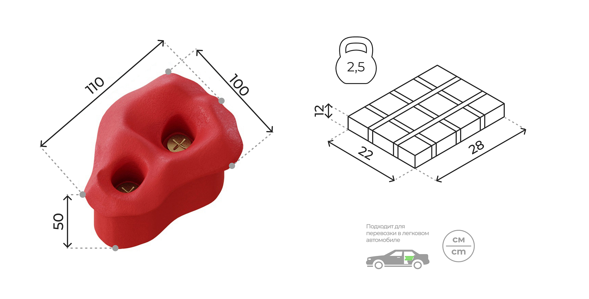 Габариты 1 зацепа, мм 110 х 100 х 50