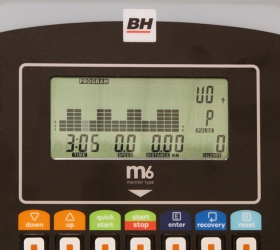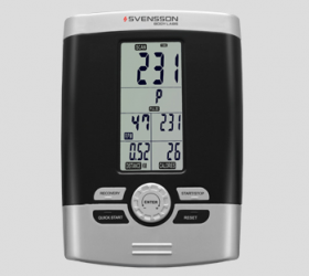Тренировочный компьютер представлен черно-белым LCD-дисплеем диагональю 14,5 см. На экран выводятся все основные параметры тренировки - время, дистанция, скорость, калории, обороты в мин. и пульс. Регулировка нагрузки регулируется механическим путем в 8 положениях. По завершении тренировки функция Recovery оценит способность сердечно-сосудистой системы к восстановлению. К числу дополнительных характеристик эллипсоида относятся такие опции как транспортировочные ролики и компенсаторы неровностей пола. Таким образом, переместить изделие из одного места в другое не составит большого труда даже для хрупкой девушки, а компенсаторы позволят отрегулировать положение ножек на неровной поверхности.