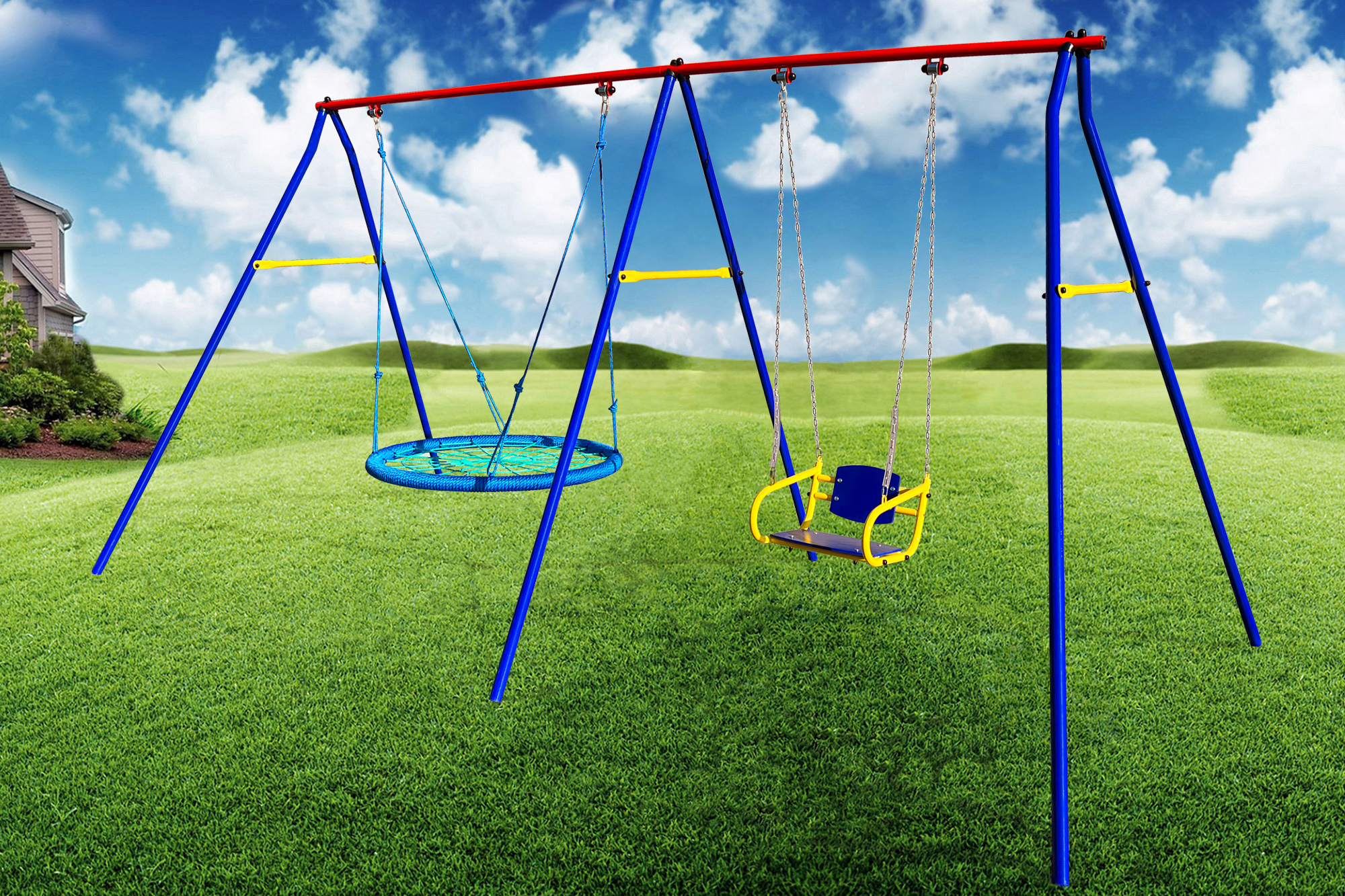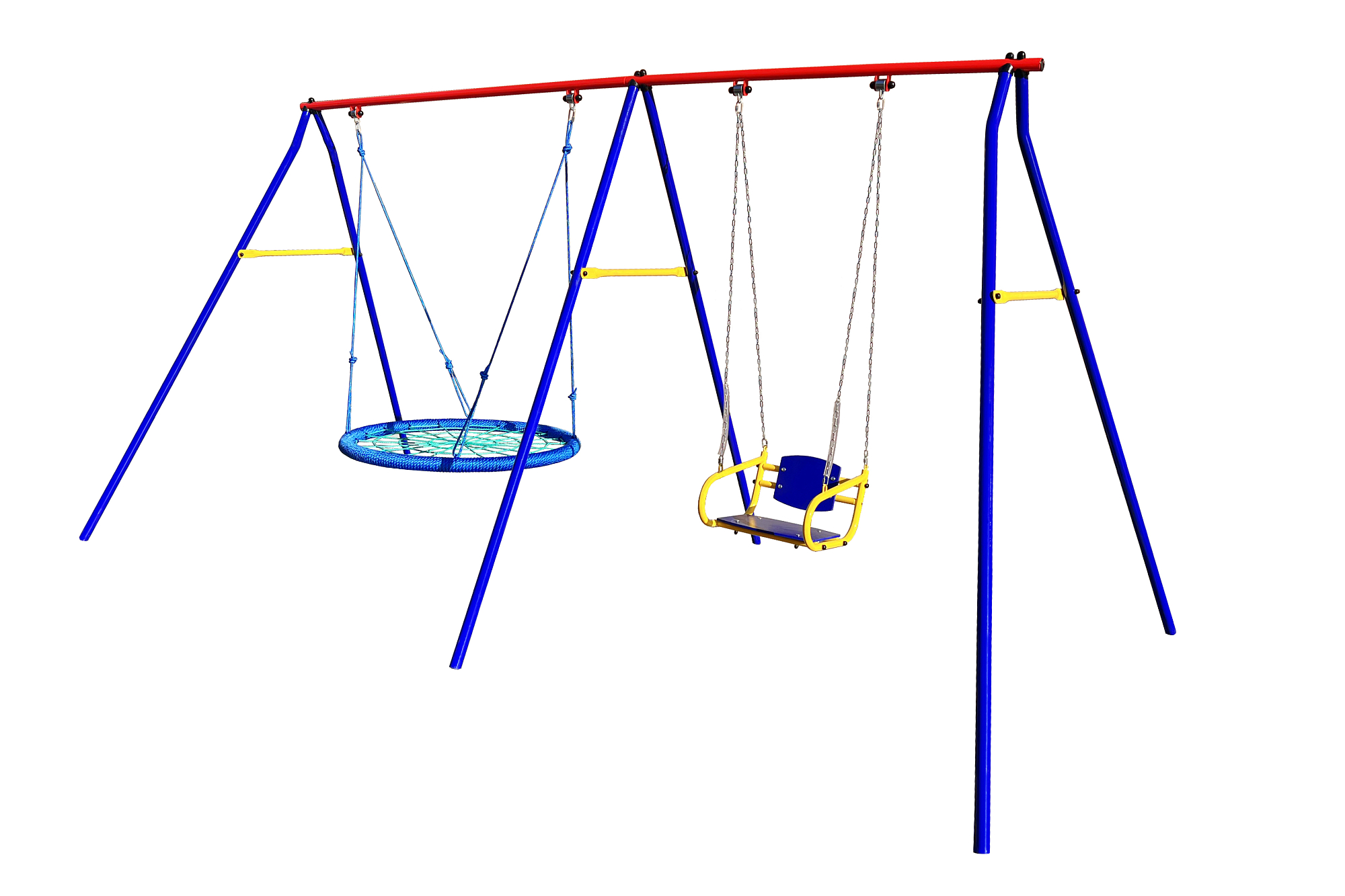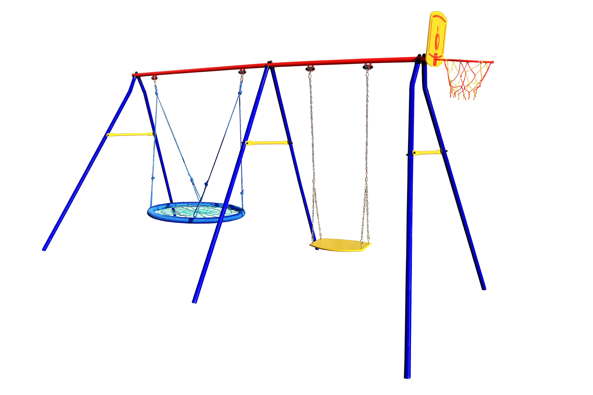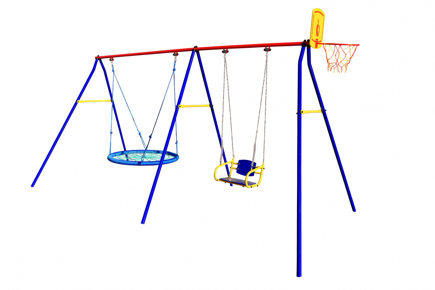 Металлические элементы окрашены порошковой эмалью, сиденье качелей выполнено из прочной окрашенной фанеры.