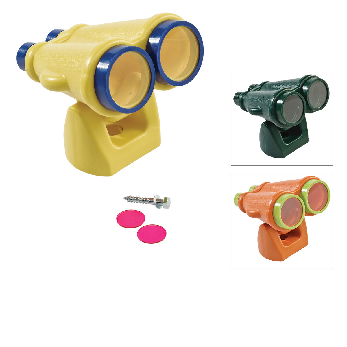 Бинокль имеет пару малых желтых и пару больших прозрачных линз. В комплекте пара запасных малых розовых линз. В наличии соединительный элемент и набор крепежей.