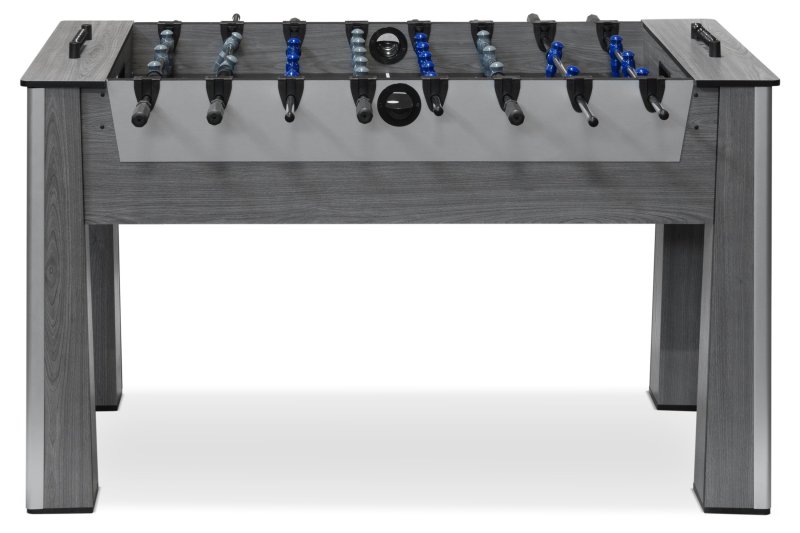 Механические счётчики голов, помогающие следить за ходом игры, располагаются на обоих концах стола. Этот стол также оборудован удобными мячеприёмниками и лотками для ввода мячей на игровое поле.