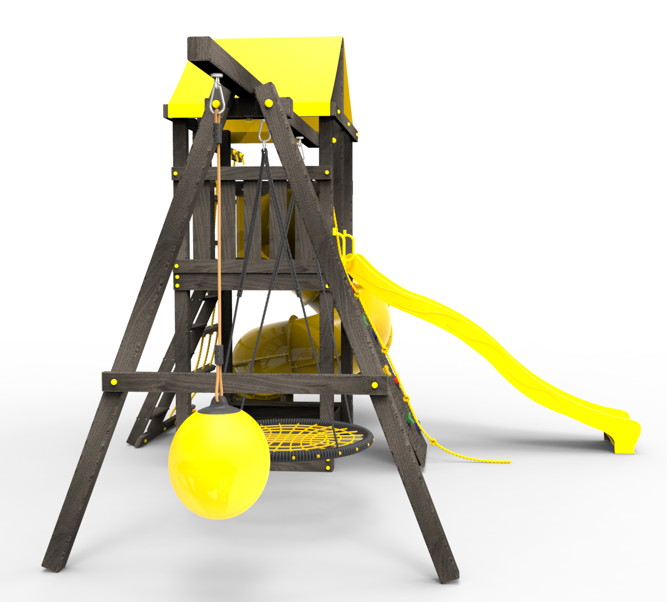 • Комплектация качели груша Drop / кронштейны для качелей (3 шт.) / ручки (1 пара) / деревянная крыша / шторм трап (веревочная лестница)