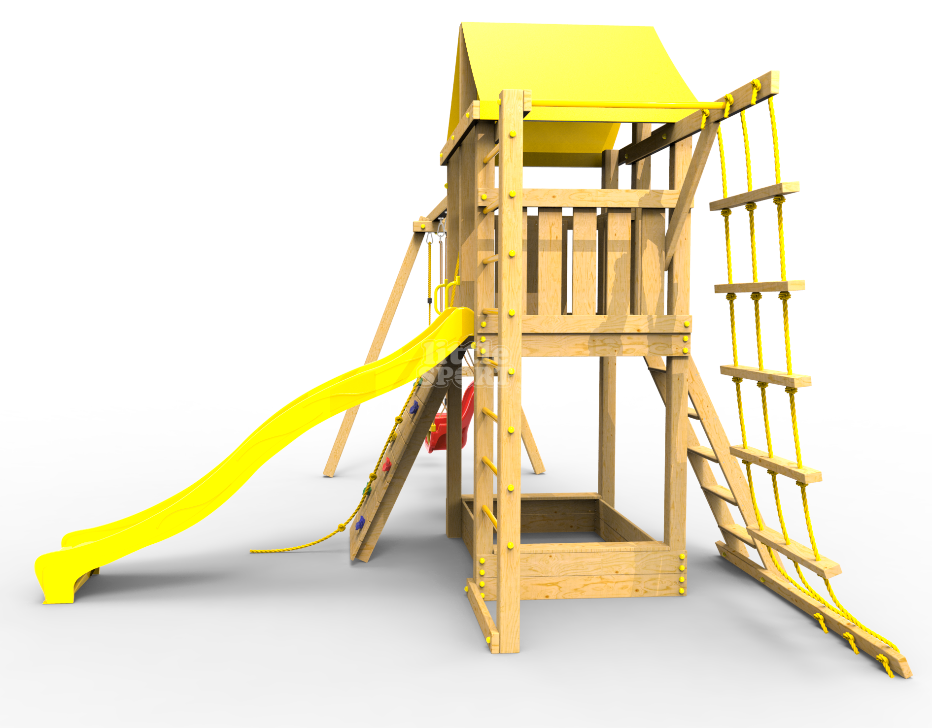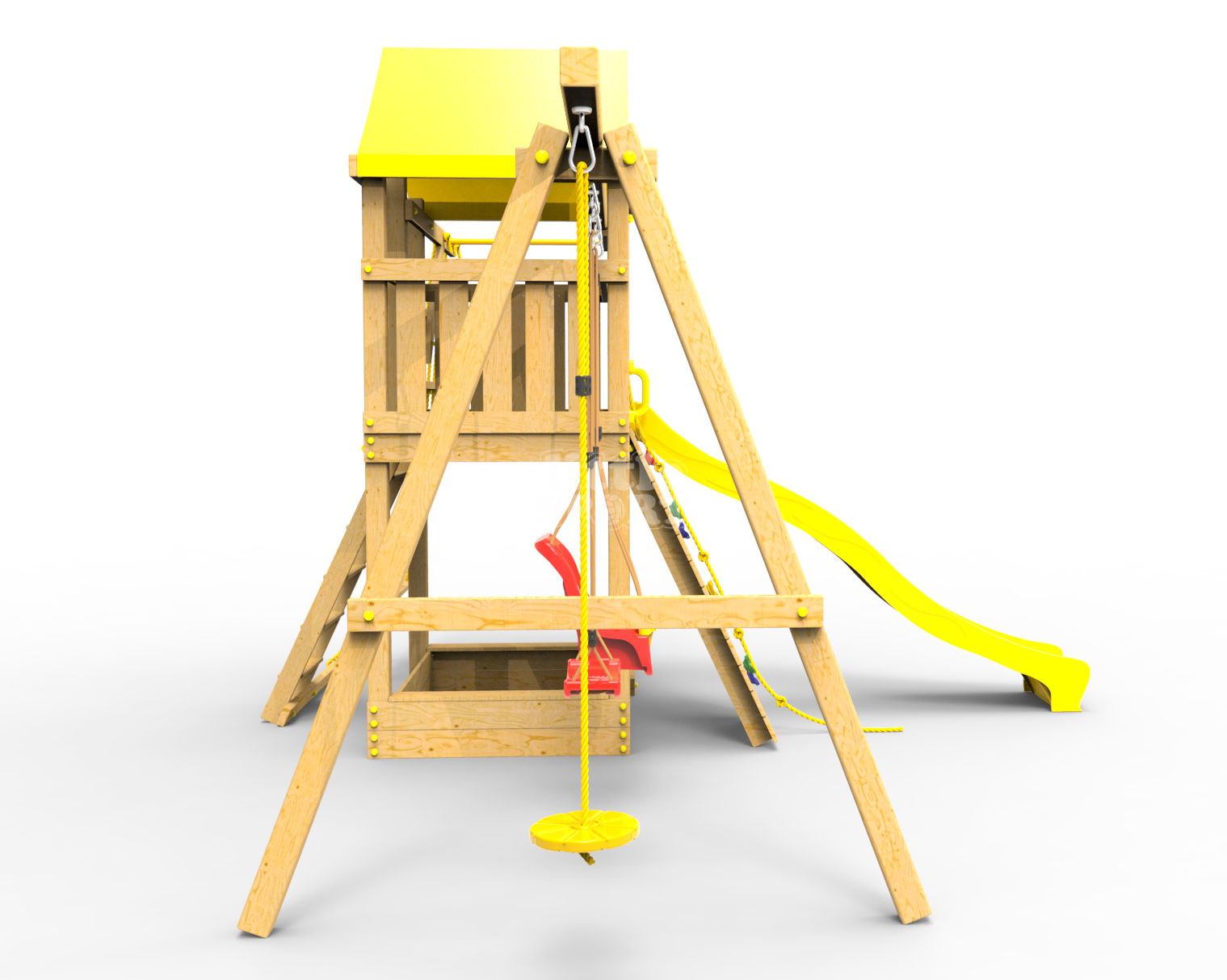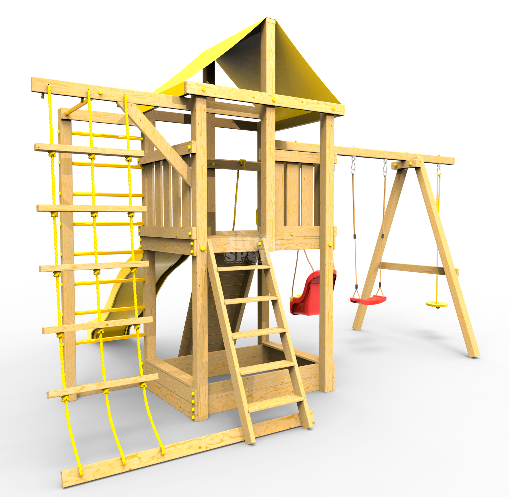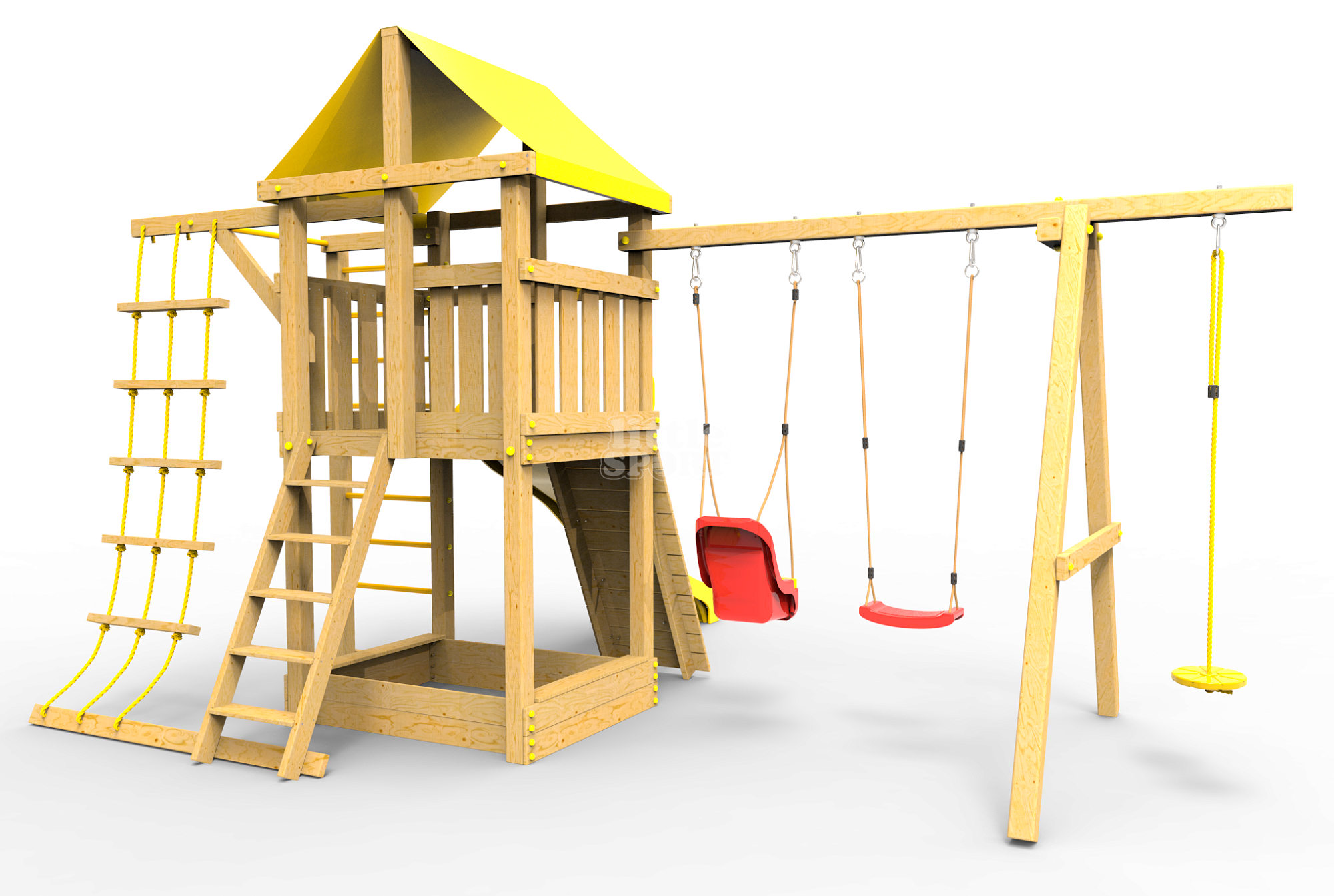 ● деревянная крыша ● трап 2м с канатом ● поручни для лестницы ● диван на цепях двухместный ● столик в песочницу