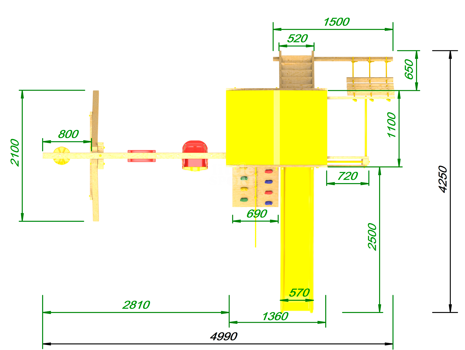 Обращаем Ваше внимание, что фактический цвет детской площадки может отличаться от представленных фото на сайте. Специфика окраски нетоксичными пропитками и красителями допускает отклонения в цветовой гамме отгружаемых изделий. Также обратите внимание, что фактический цвет может отличаться из-за цветопередачи устройства на котором Вы смотрите фото.