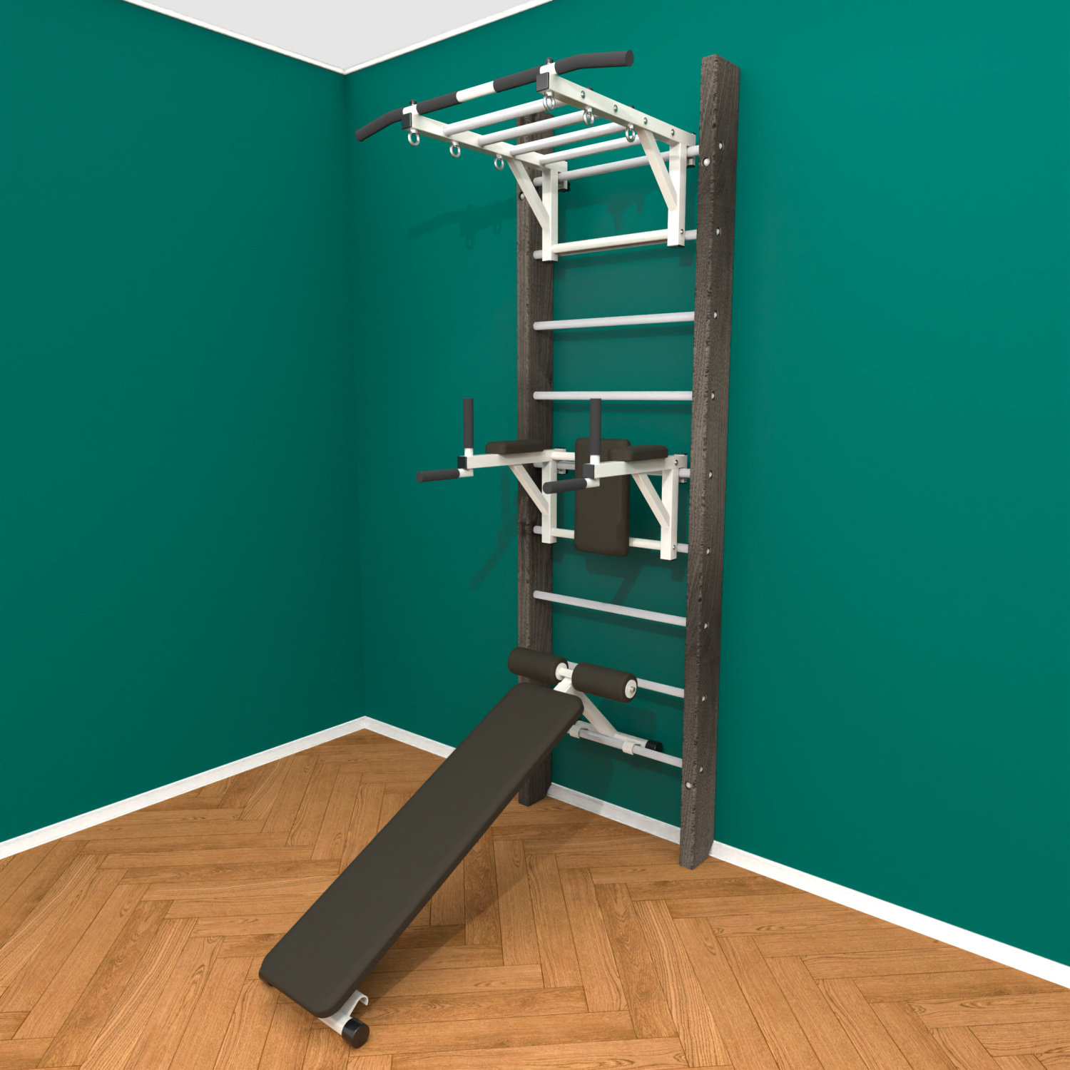 картинка Брашированная шведская стенка "Кастерли" Black РБС (Белые ступени) от магазина Лазалка