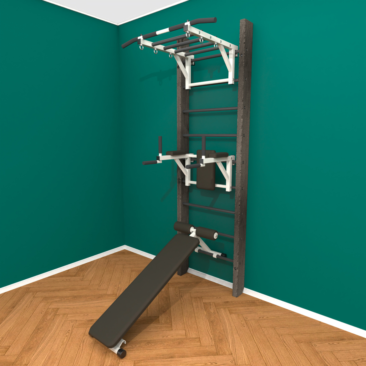 картинка Брашированная шведская стенка "Кастерли" Black РБС (Черные ступени) от магазина Лазалка