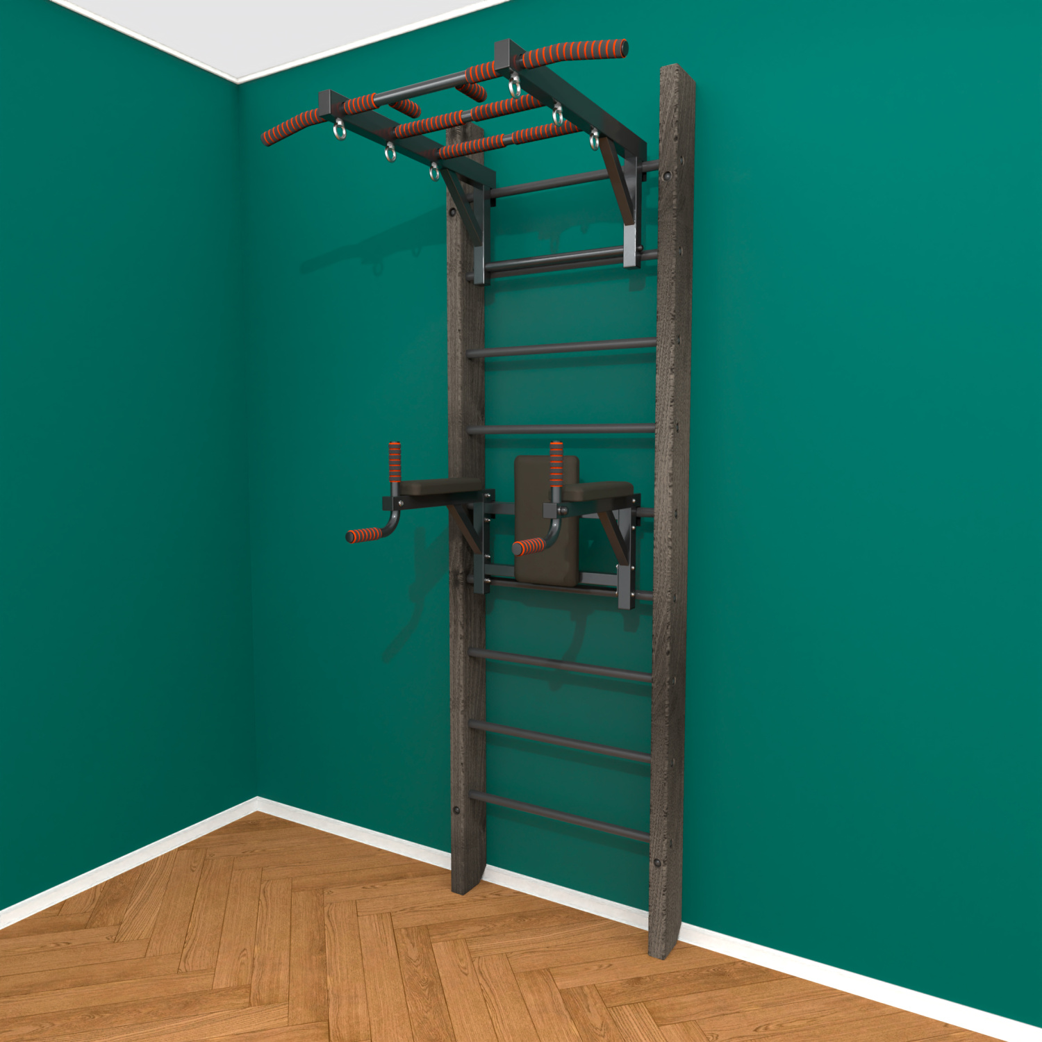 картинка Брашированная шведская стенка "Кастерли" Black ТБ (Черные ступени) от магазина Лазалка