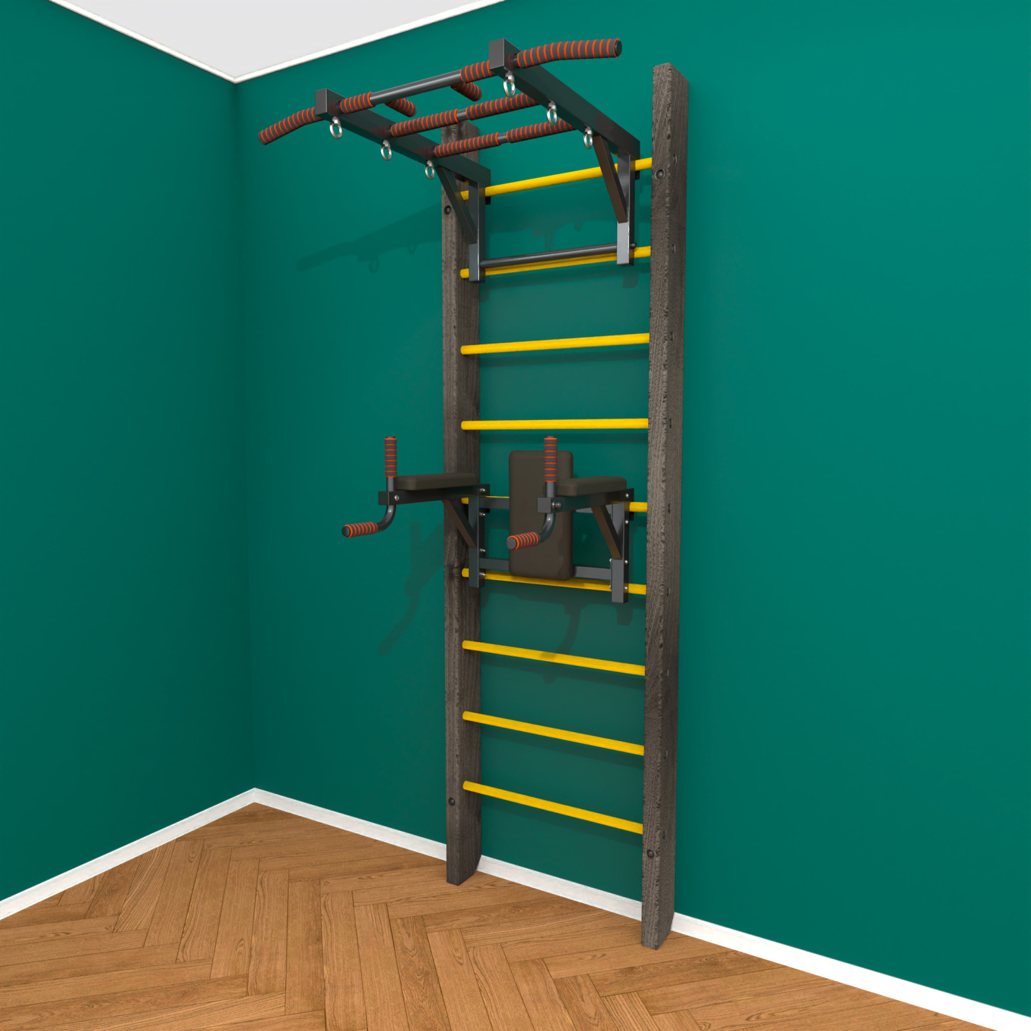 картинка Брашированная шведская стенка "Кастерли" Black ТБ (Желтые ступени) от магазина Лазалка
