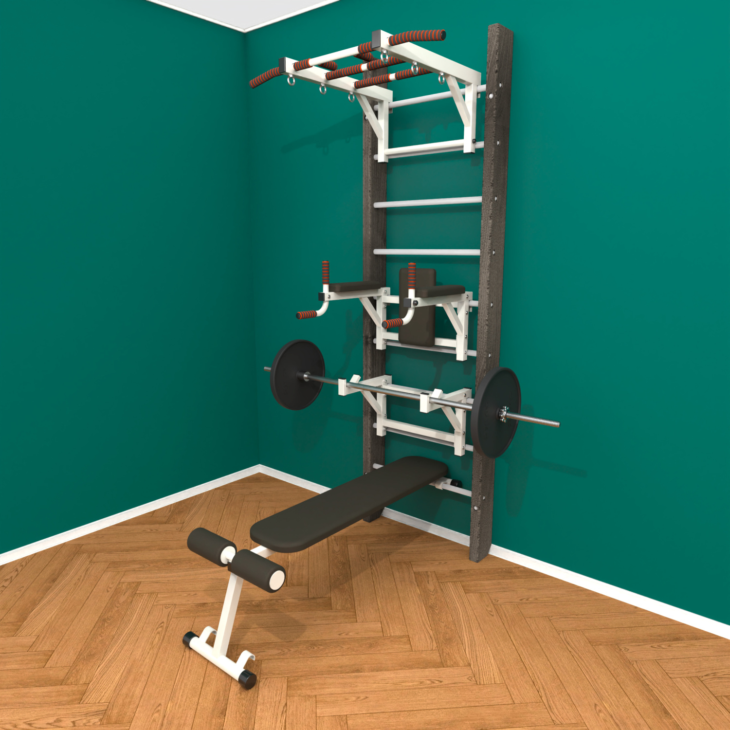 картинка Брашированная шведская стенка "Кастерли" Black ТБСШ (Белые ступени) от магазина Лазалка