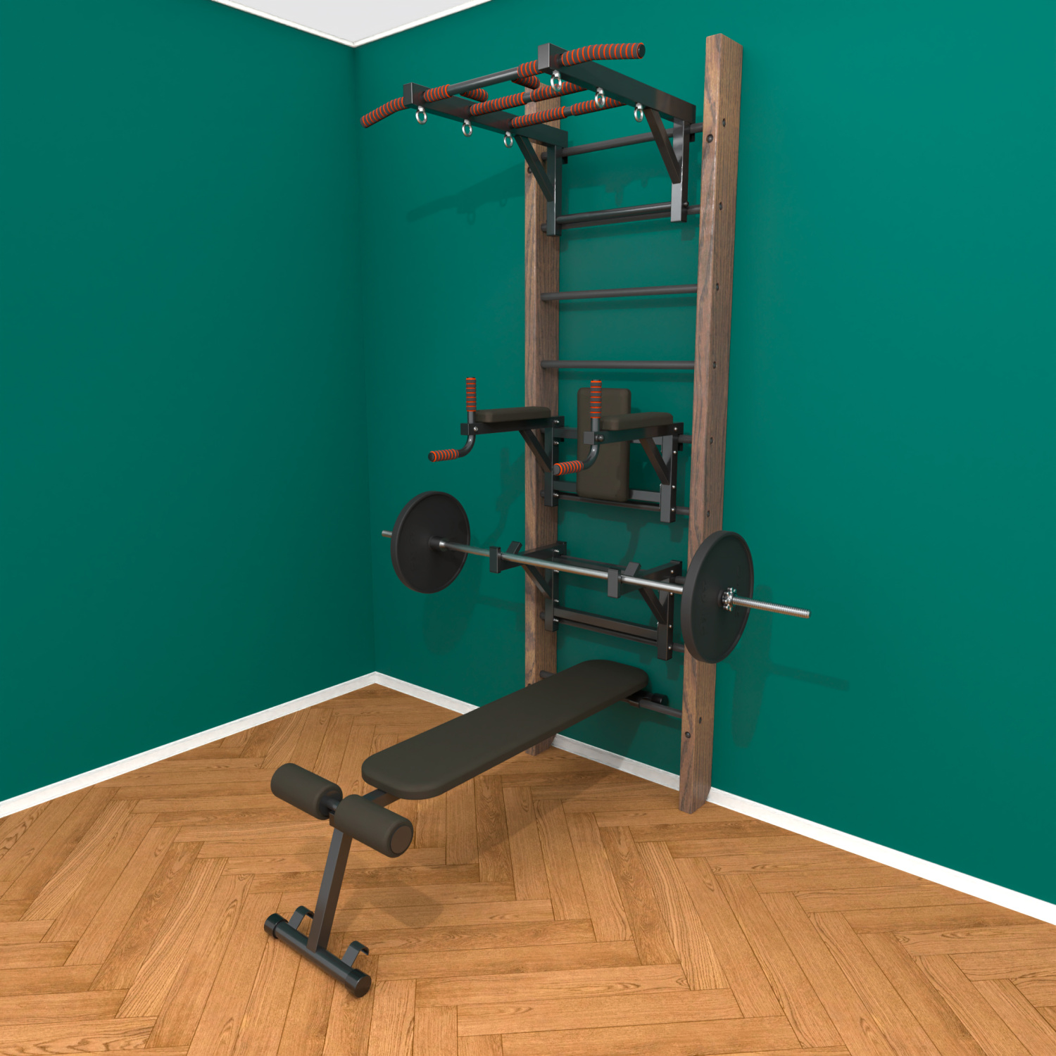 картинка Брашированная шведская стенка "Кастерли" Classic ТБCШ (Черные ступени) от магазина Лазалка