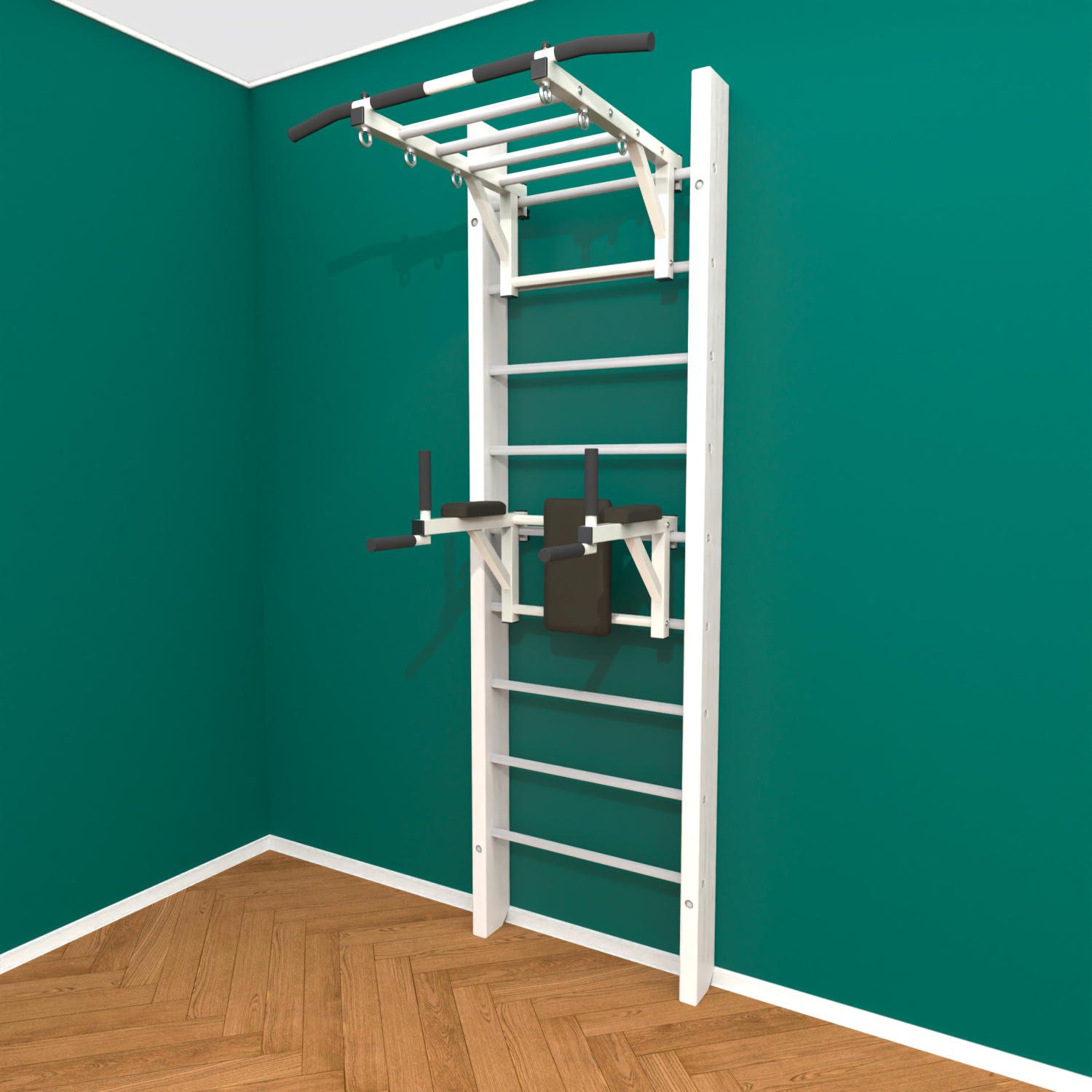 картинка Брашированная шведская стенка "Кастерли" White РБ (Белые ступени) от магазина Лазалка