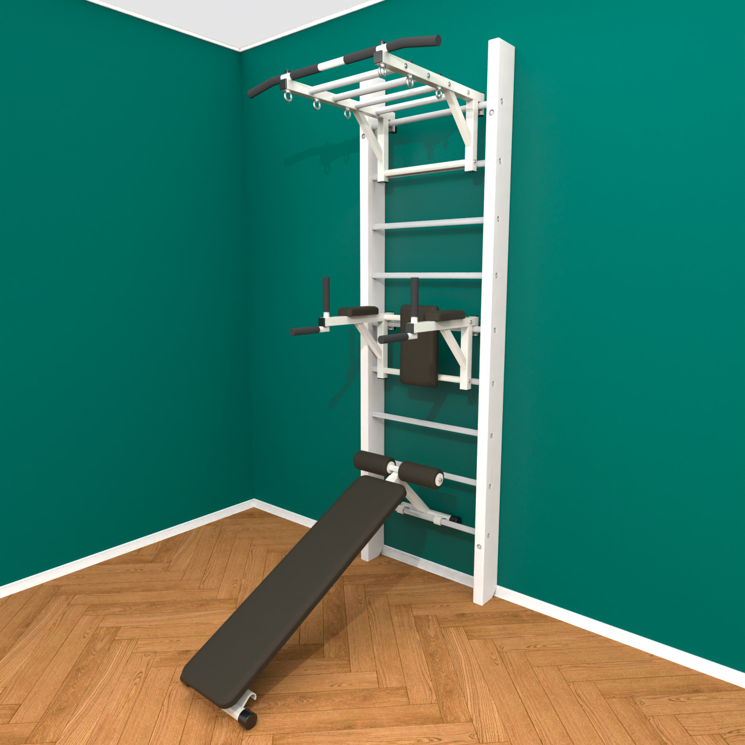 картинка Брашированная шведская стенка "Кастерли" White РБС (Белые ступени) от магазина Лазалка
