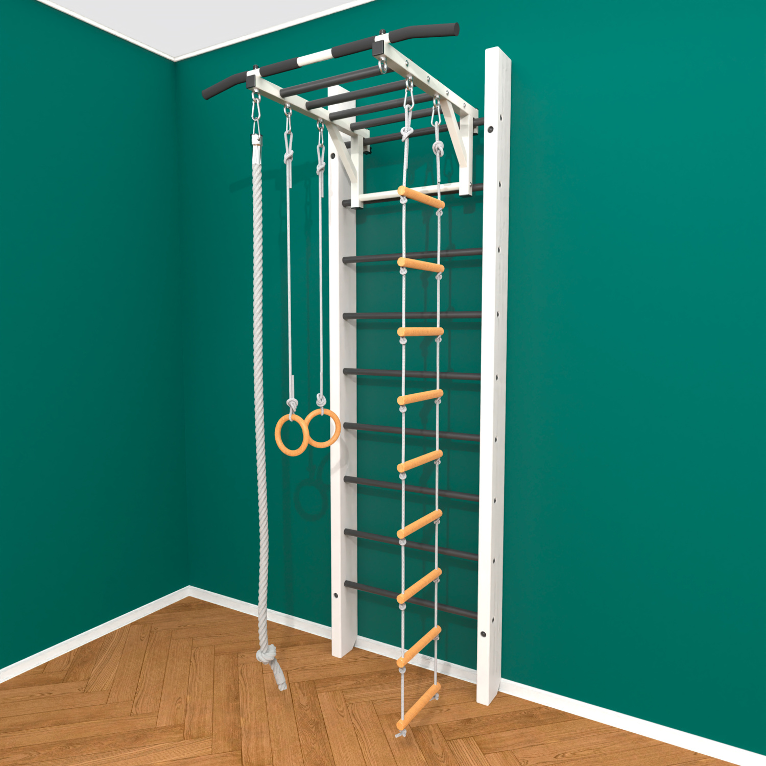 картинка Брашированная шведская стенка "Кастерли" White РД (Черные ступени) от магазина Лазалка
