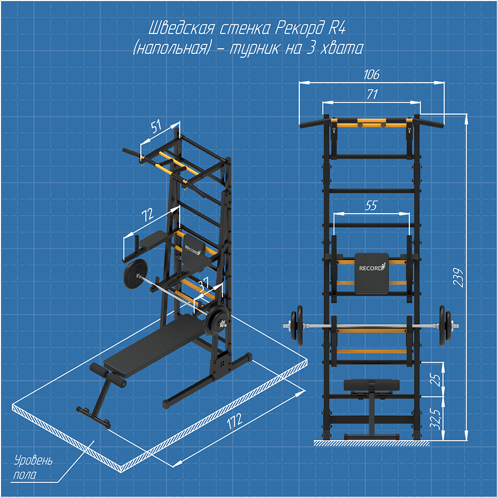 Мы предлагаем шведские стенки Рекорд серии R, которые при установке не требуют дополнительной фиксации к поверхности стены. Данная стенка не имеет аналогов по конструктивным узлам и устойчивости, потому что обладает большим раскосом спереди. Увеличенный раскос обеспечивает монолитность конструкции и сводит к минимуму возможные колебания при занятиях.