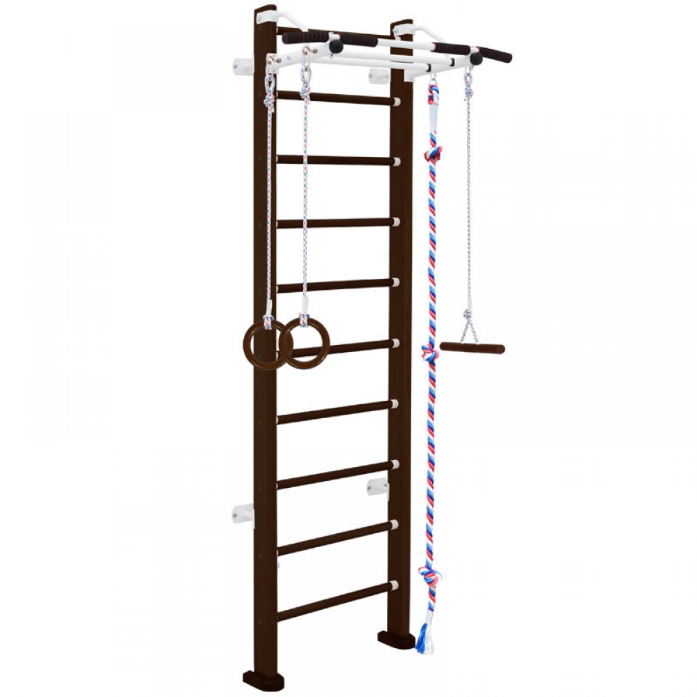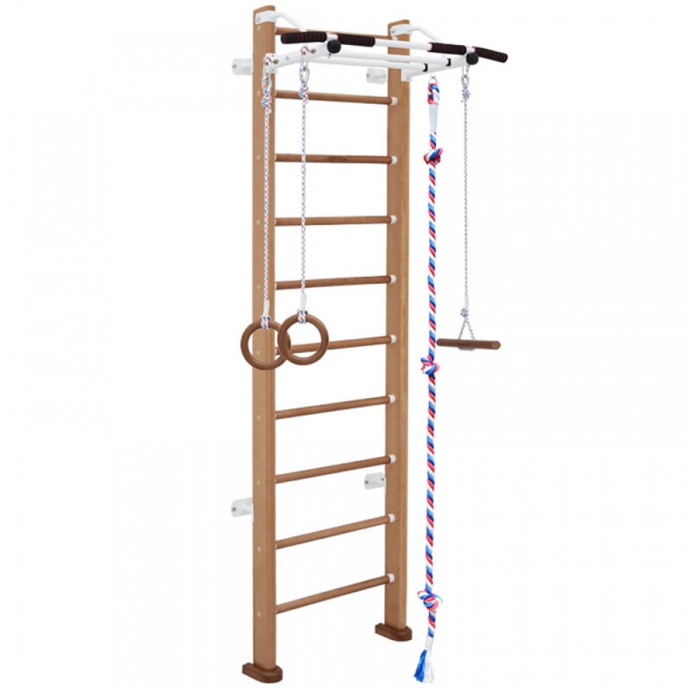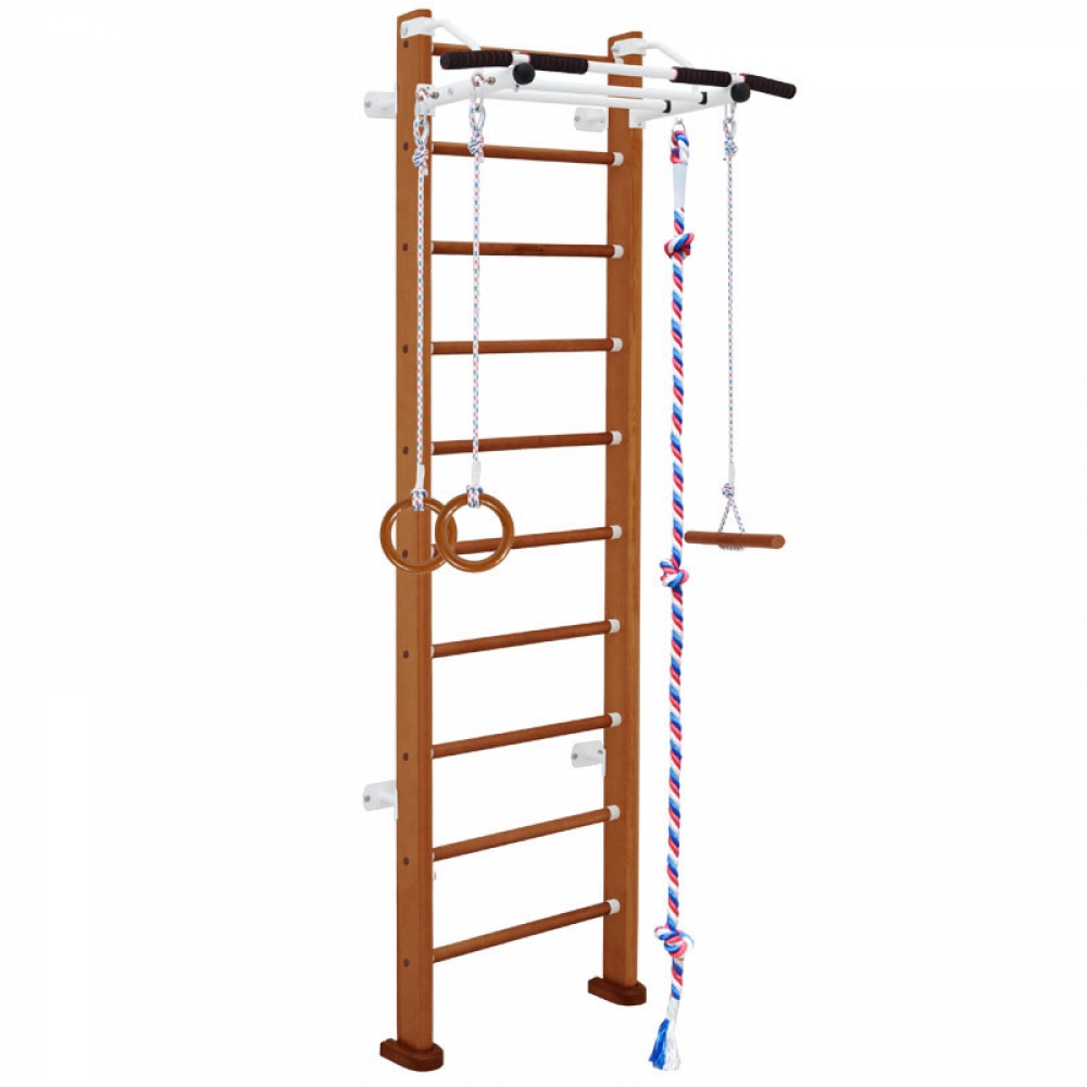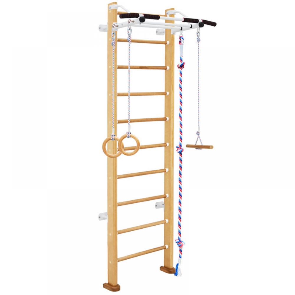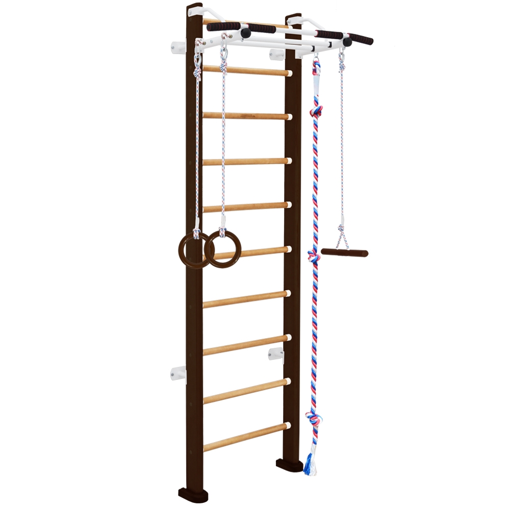 Комплектация: шведская стенка, канат, кольца, тарзанка, турник с неопреновыми ручками;