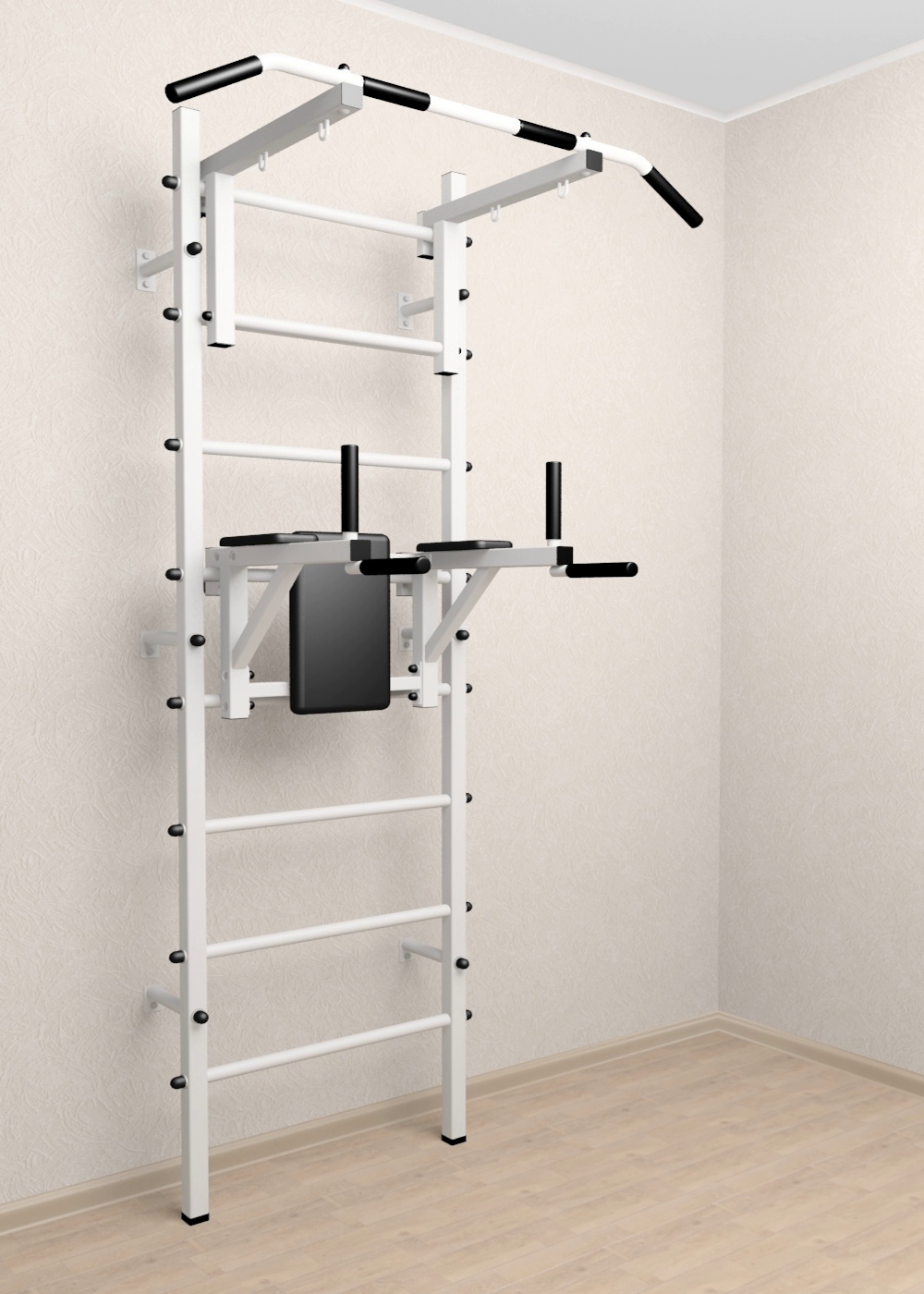 • Цвет покраски: белый; Цвет фурнитуры: черный; Цвет ступеней: черный, разноцветный, синий, желтый, красный, белый.