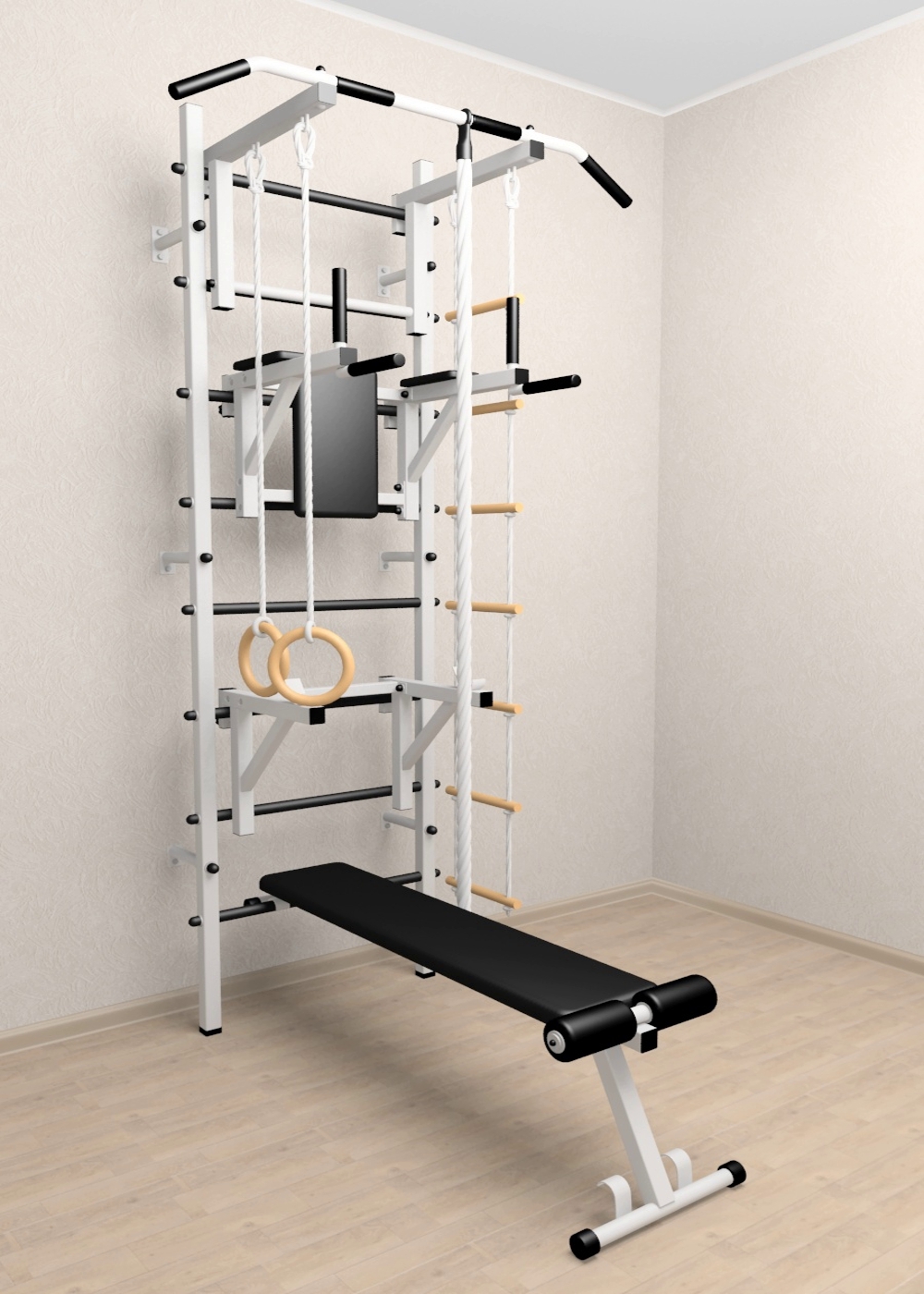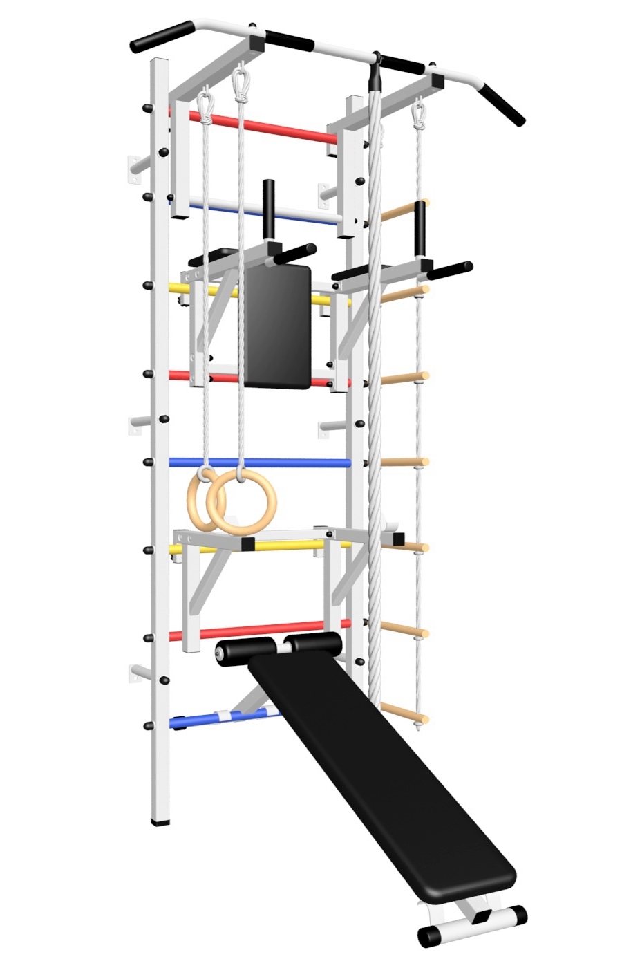 Стойки шведской стенки Sv Sport стандарт изготовлены из профильной трубы 40 х 40 х 2 мм. Ступени изготовлены из круглой, стальной трубы, покрытой резиной (не скользят, не натирают мозоли, не прокручиваются, не имеют запаха, приятны на ощупь). Устанавливается к стене при помощи 6 кронштейнов. На перекладину, в местах хватов, одеты резиновые ручки.