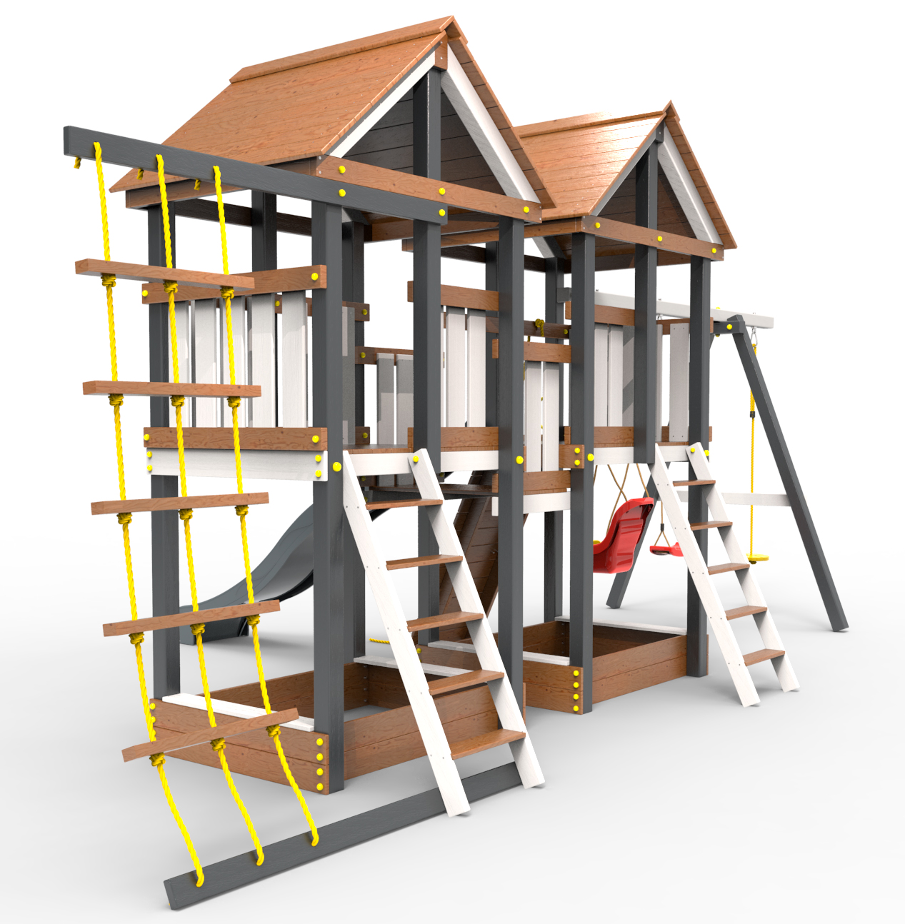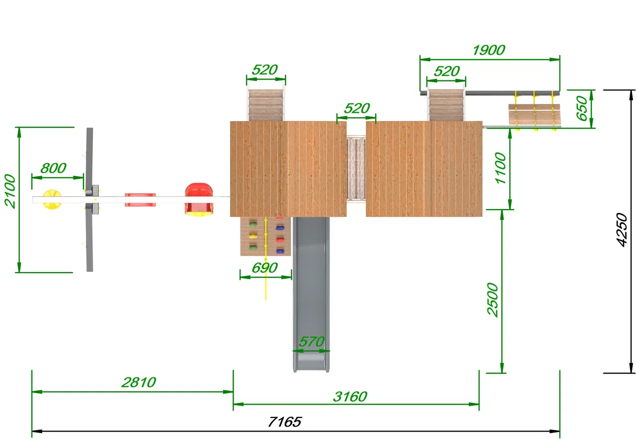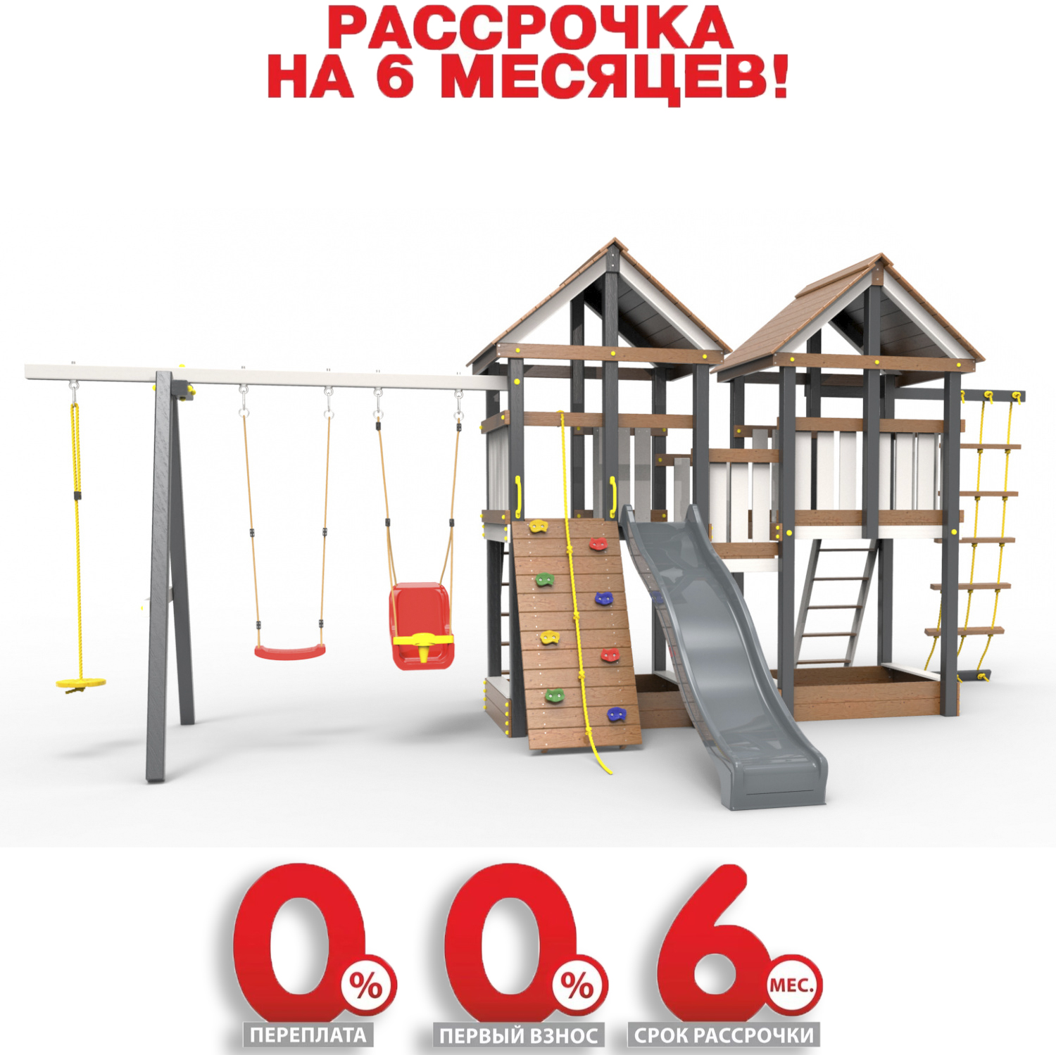 Обращаем Ваше внимание, что фактический цвет детской площадки может отличаться от представленных фото на сайте. Специфика окраски нетоксичными пропитками и красителями допускает отклонения в цветовой гамме отгружаемых изделий. Также обратите внимание, что фактический цвет может отличаться из-за цветопередачи устройства на котором Вы смотрите фото.