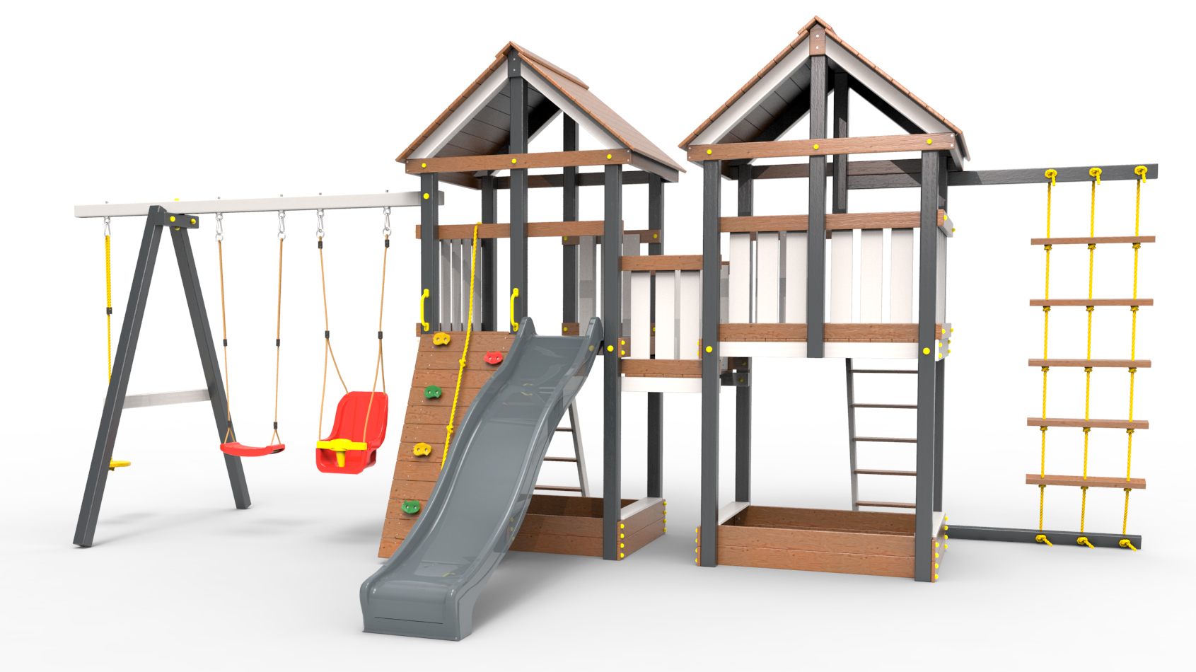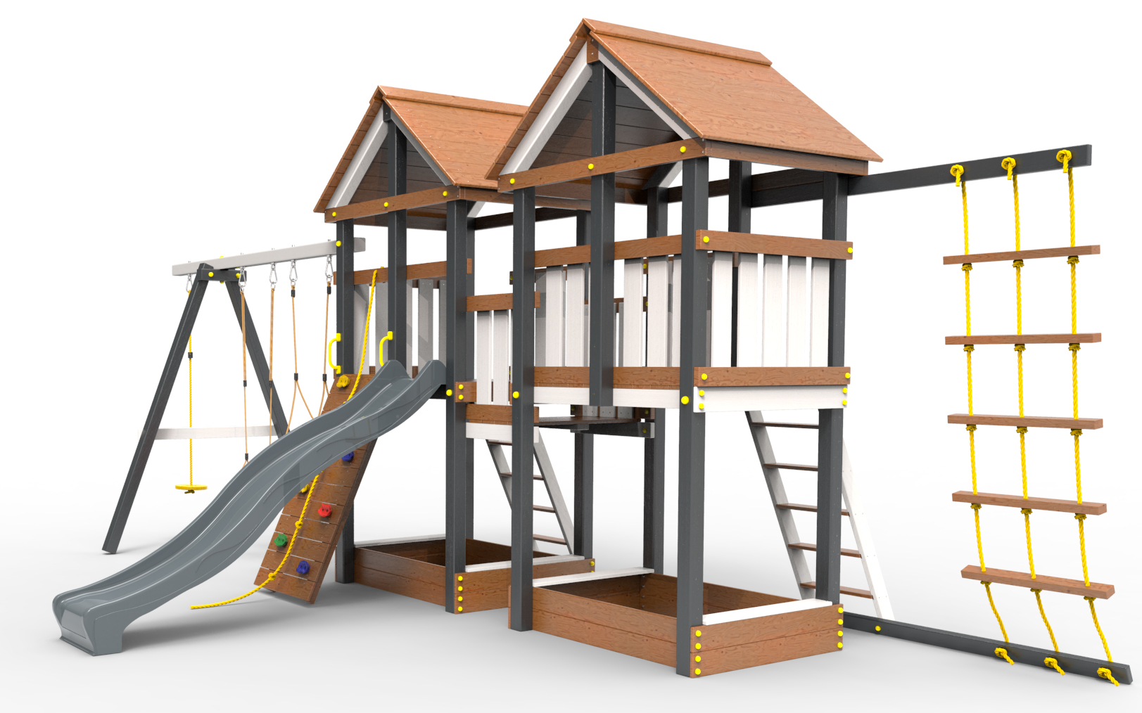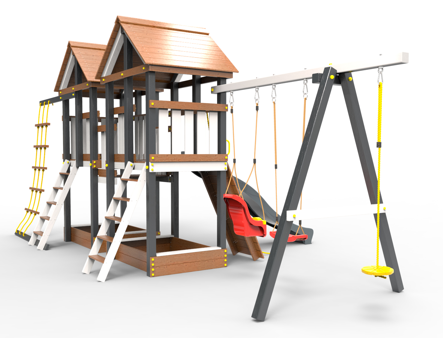 Обращаем Ваше внимание, что фактический цвет детской площадки может отличаться от представленных фото на сайте. Специфика окраски нетоксичными пропитками и красителями допускает отклонения в цветовой гамме отгружаемых изделий. Также обратите внимание, что фактический цвет может отличаться из-за цветопередачи устройства на котором Вы смотрите фото.