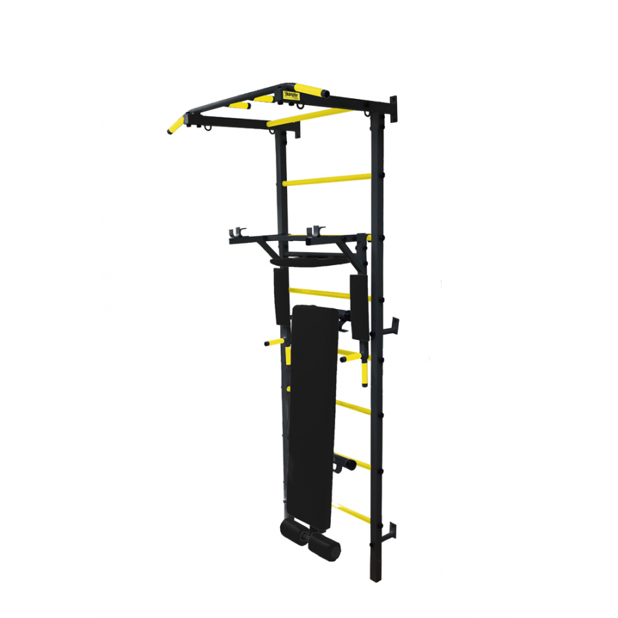 Шведская стенка, брусья-пресс с упорами для штанги, скамья 2 в 1