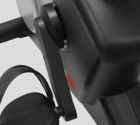 За показатели пульса отвечают вмонтированные в рукоятки сенсорные датчики пульса. Велотренажер удобно перемещать благодаря двум транспортировочным роликам, а точное горизонтальное положение обеспечивают компенсаторы неровностей пола. Черно-белый LCD-дисплей диагональю 9 см одновременно выводит на экран различные параметры тренировки - время, дистанцию, скорость, калории, обороты в мин., пульс. Помимо этого, здесь предусмотрена функция фитнес-теста (Recovery) - она позволяет быстро оценивать тренированность человека и определять, насколько хорошо развита его сердечно-сосудистая и дыхательная системы. Конструкция рамы рассчитана на комфортную тренировку пользователей ростом до 190 см и весом до 120 кг.