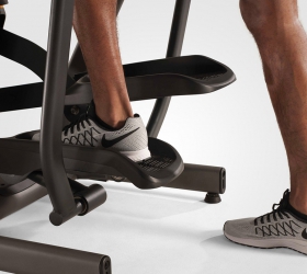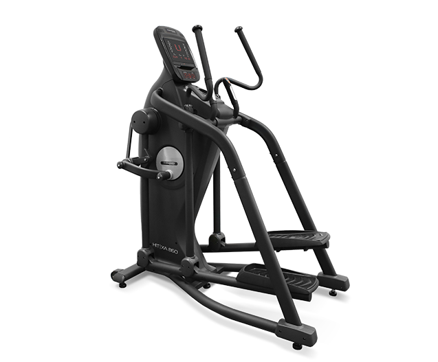 Серия HIT от Svensson Industrial - это премиальная профессиональная серия, рассчитанная на максимальные режимы коммерческой эксплуатации (Heavy Commercial). Произведенные на Тайване тренажеры отличаются высоким качеством сборки, а также использованием самых надежных узлов и компонентов. Дизайн выполнен в традиционных для Svensson Industrial строгих и изящных формах. Высокий класс оборудования и его надежность подчеркивает черный матовый цвет с использованием хромированных и серебристых элементов. К числу основных преимуществ HIT XA860 относится индукционная система нагружения (индукционный тормоз). На сегодняшний день это наиболее совершенная система нагрузки у вело- и эллиптических тренажеров. Торможение маховика происходит за счет магнитного поля, которое создается катушкой с поданным на неё электрическим током, расположенной в непосредственной близости от маховика. При увеличении силы тока в проводах катушки возрастает сила магнитного поля и наоборот - при уменьшении силы тока поле ослабевает, за счет чего и происходит изменение нагрузки. Преимущества индукционного тормоза следующие. Во-первых, число взаимодействующих трущихся элементов сведено к минимуму, поэтому и общая надежность системы гораздо выше. Во-вторых, ход тренажера гораздо мягче и плавнее, уровень шума при этом ниже, чем у тренажеров с иной системой нагружения. В-третьих, индукционному тормозу (в связке с генератором) не нужно подключение к сети - а это экономия электричества и отсутствие лишних проводов. HIT XA860 оснащен передовыми решениями, влияющими на биомеханические свойства. Передний привод с маховиком 30 кг обеспечивает правильную и естественную траекторию движения. Длина шага изменяется автоматически от 48 до 64 см при помощи кнопок на передней панели. Преимущество данной функции позволяет подгонять длину шага практически под любой рост пользователя. Расстояние между педалями (супермалый Q-Фактор E.S.Q.F. ) составляет всего 5 см. Безусловно, важна рама - иначе тренажер просто не выдержит высокоинтенсивных нагрузок. Эллипсоид построен с использованием сварного профиля максимальной прочности (Ultra Heavy Gauge Steel). Именно поэтому нетто вес изделия составляет внушительные 142 кг, а максимальный вес рассчитан на пользователей до 200 кг. HIT XA860 отлично дополнит и разнообразит любой корпоративный зал или студию. Более того, эллиптический тренажер имеет компактные размеры, что определенно сэкономит площадь в помещении для установки другого оборудования. XA860, это также отличный универсальный аппарат для домашнего применения. Тренировочный компьютер представлен двумя буквенно-цифровыми LED дисплеями профессионального уровня. На экран компьютера выводятся все основные данные - профиль тренировки, скорость, дистанция, количество оборотов в минуту, калории, ватты, уровни сопротивления и пульс. В программный пакет входит 5 разносторонних предустановленных программ (произвольная, интервальная, долина, холм и гора). К тому же, на консоли установлен ручной режим для регулировки показателей во время тренировочного процесса, а также 4 пользовательских режима, которые позволят запрограммировать собственную тренировку. Для контроля частоты сердечного ритма, можно воспользоваться двумя пульсозависимыми программами. Для точного определения пульса и просто комфортной тренировки в компьютер встр