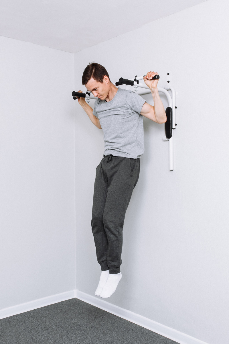 Турник-брусья представляет собой многофункциональный тренажер, который позволяет прорабатывать и укреплять основные группы мышц: трицепс, бицепс, спину, грудь, пресс. На турнике можно осуществлять подтягивания различными видами хватов, на брусьях – отжимания и подъемы ног для проработки пресса. Благодаря конструктивным особенностям, тренажер в любой момент можно переместить из положения «турник» в положение «брусья» и обратно. Покрытие на перекладине препятствует соскальзыванию рук, а мягкие подлокотники на брусьях обеспечивают комфортные условия во время занятий. Дополнить комплекс можно боксерским мешком весом 1кг, 5кг, 12кг или 20кг на выбор.