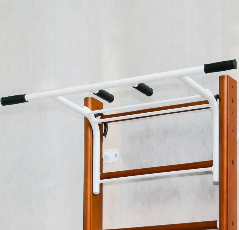 Простая, классическая модель станет отличным дополнение к любой шведской стенке. Удобство хранения и транспортировки, стандартные размеры при возможной нагрузке до 100 кг -вот несомненные плюсы данного турника. Удобное крючковое крепление на перекладину деревянного ДСК позволит разместить турник на нужной высоте и подойдет любому ребенку от 4 лет и старше. При необходимости демонтируется и не требует особых условий хранения, а так же не займет много места. Удобные хваты и нескользящие ручки делают турник безопасным. Долговечность используемых материалов и малый вес -всего 6 килограммов, позволяют сделать эту модель Вашим надежным спутником во всевозможных поездках.