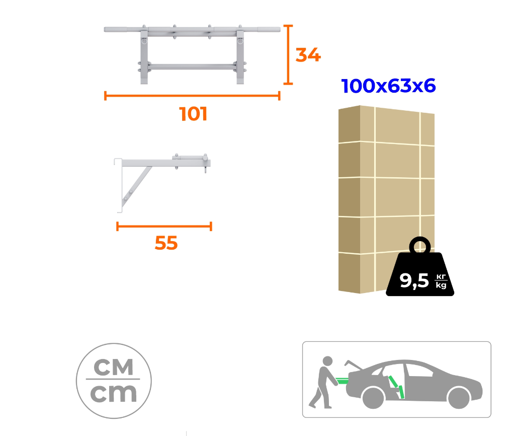 Турник прошел испытания нагрузкой в 240 кг, быстро снимается и фиксируется на любую высоту стенки, поэтому тренажер подходит для занятий спортом для всей семьи: подростков и взрослых разного роста и веса.