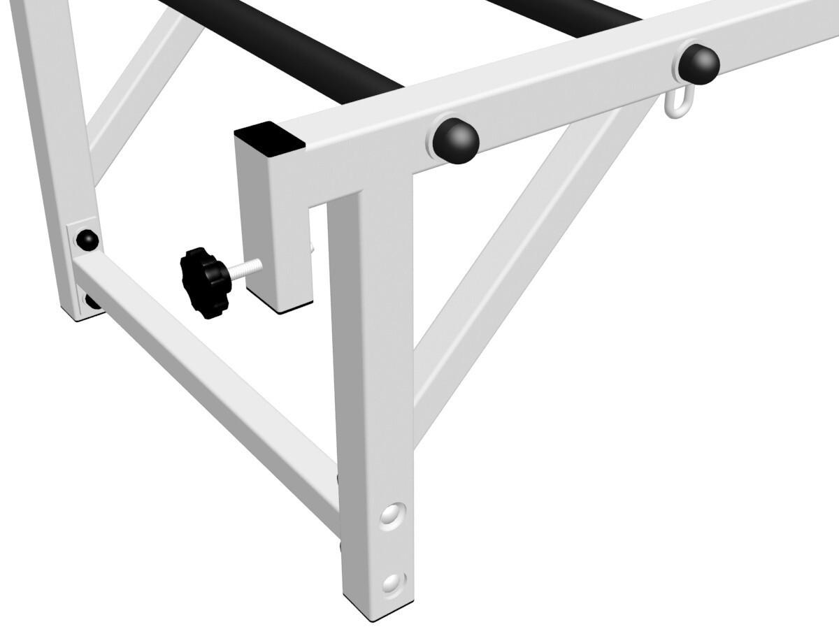 Турник Sv Sport рукоход к шведской стенке изготовлен из профильной трубы 40 х 40 мм и круглой трубы D30 мм. На турник, в местах хватов, одеты резиновые ручки. Перекладины рукохода изготовлены из круглой трубы D30 мм и покрыты антискользящей порошковой краской. Турник оснащен фиксатором, предохраняющим от случайного опрокидывания. Все торцы, болты, гайки заглушены пластиковыми заглушками отличного качества.