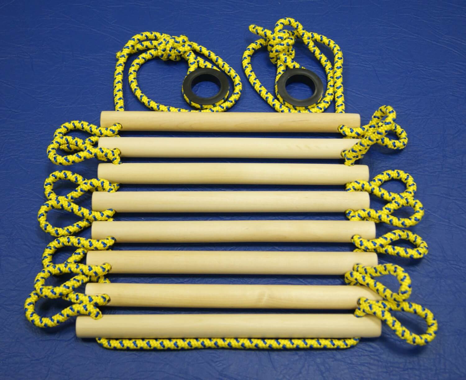 Веревочная лестница прекрасно развивает вестибулярный аппарат, тренирует почти все группы мышц ребенка.