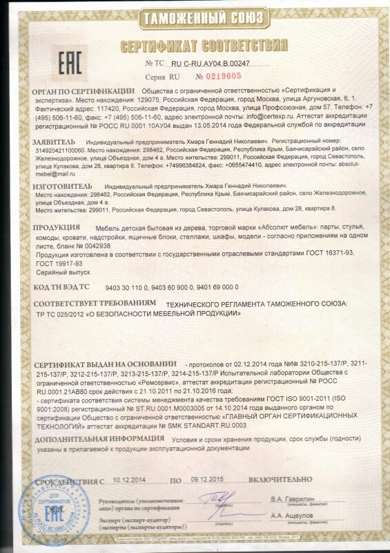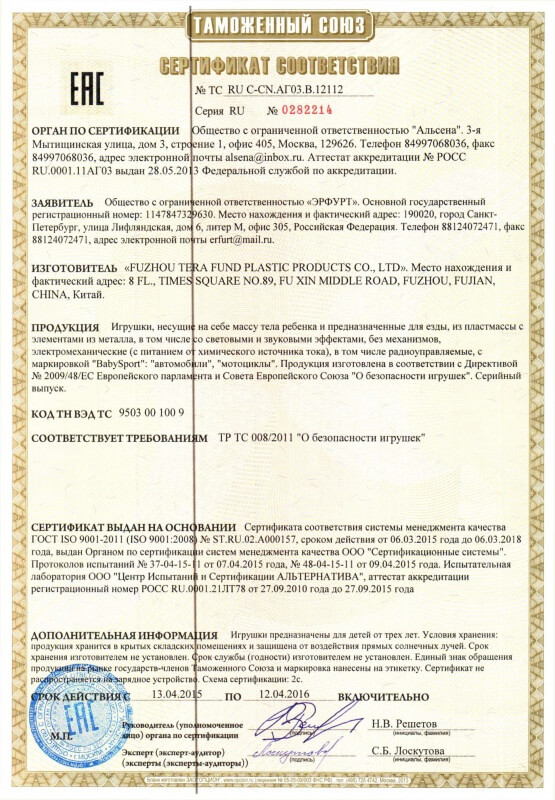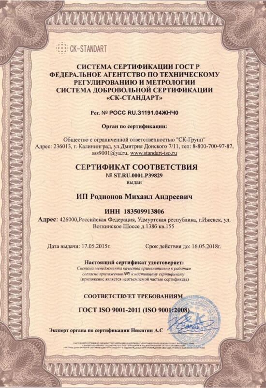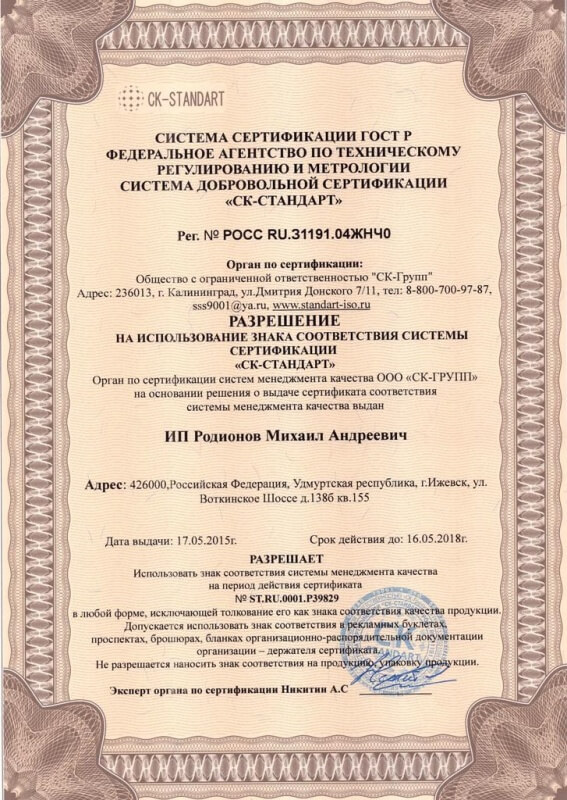 Сертификаты качества